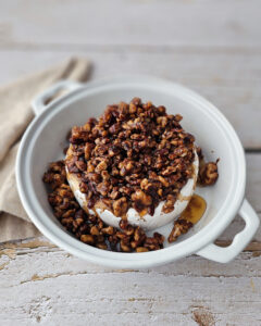 Imagine creamy Brie melting into a pool of toasty nuts, kissed with a sprinkle of cinnamon and finished with a drizzle of maple syrup. It’s cozy, sweet, and a little nutty, like the holidays themselves. This is one of those appetizers that disappears fast, so you may want to make two.