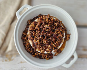 Baked Brie with Toasted Nuts, Cinnamon, and Maple Syrup