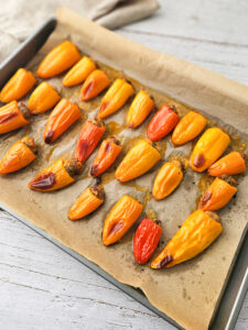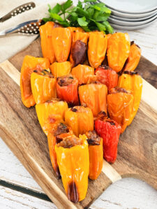 Sweet, colorful mini peppers cradle a warm, creamy, savory filling that turns extra irresistible once it hits the oven.