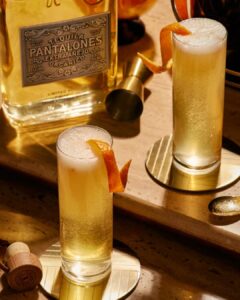 Pantalones Extra Fancy Pants: t’s a bubbly, dressed-up sip made with Pantalones Organic Extra Añejo, a touch of orange liqueur, and a few dashes of Angostura bitters, then topped with champagne for that sparkling finish. GET THE RECIPE HERE