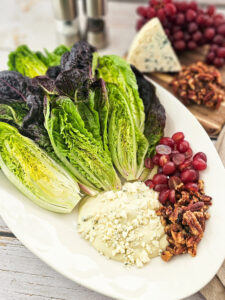 Deconstructed Leaf Lettuce Salad with Walnuts, Grapes, and Dijon Bleu Dressing