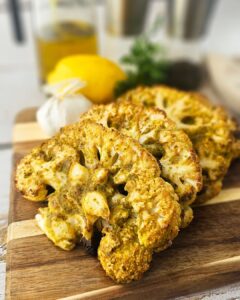 Savory Cauliflower Steaks: Golden on the edges and tender in the center, this recipe is proof that simple ingredients can still feel special. A quick hit of garlic, bright lemon, and fresh parsley brings big flavor fast, then a sprinkle of Romano melts into a salty, savory crust you’ll want on every bite. GET THE RECIPE HERE