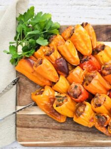 Baked Mini Pepper Poppers: They are the kind of crowd-pleasing bite that instantly brightens up a table.Sweet, colorful mini peppers cradle a warm, creamy, savory filling that turns extra irresistible once it hits the oven. GET THE RECIPE HERE