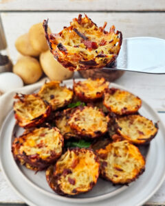 Gluten Free Crispy Hash Brown Ham Bites: They’re golden on the outside, cheesy in the middle, and packed with that classic ham-and-cheese comfort, just made gluten-free. Perfect for busy mornings, meal prep, or an easy brunch add-on, these bites bring all the crunchy, savory goodness without frying. GET THE RECIPE HERE