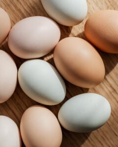 One of the fun surprises about raising chickens is the variety of egg colors. Depending on the breed, hens can lay blue, green, light brown, dark chocolate brown, or even speckled eggs.