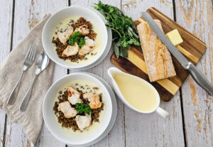 Monkfish Medallions with Lentils and Chaource Cream