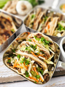 Smashed Dumpling Tacos: This recipe takes everything you love about a perfect pan-fried dumpling and gives it an entirely new life inside a warm tortilla. The filling gets pressed flat and seared hard for maximum crispy-edge coverage, then piled high with a bright, crunchy Asian Coleslaw and finished with a glossy drizzle of dumpling dipping sauce. GET THE RECIPE HERE