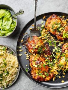Sheet Pan Peanut Chicken: This recipe is the perfect combination of savory and sweet, with tender chicken thighs covered in a crunchy peanut sauce that’s packed with flavor. GET THE RECIPE HERE