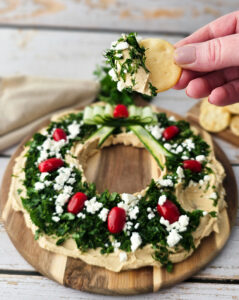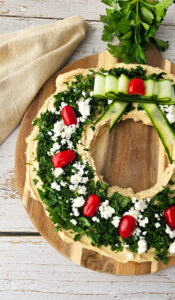 Need something easy and festive to bring to your next holiday party? This Viral Hummus Wreath checks both boxes. Inspired by the versions we keep seeing all over our instagram feeds, we put a Women of Today spin on it with creamy hummus, crunchy veggies, and a few simple toppings that you can grab at the store or pull from your fridge.